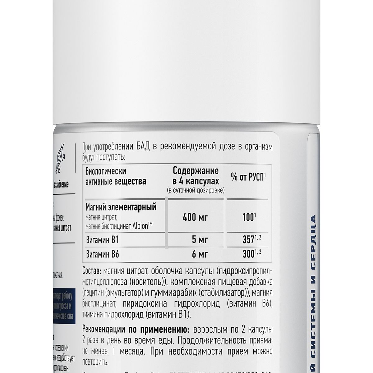 Магний 2 формы (хелат+цитрат) 400 мг плюс синергисты В1, B6, растительные капсулы №60