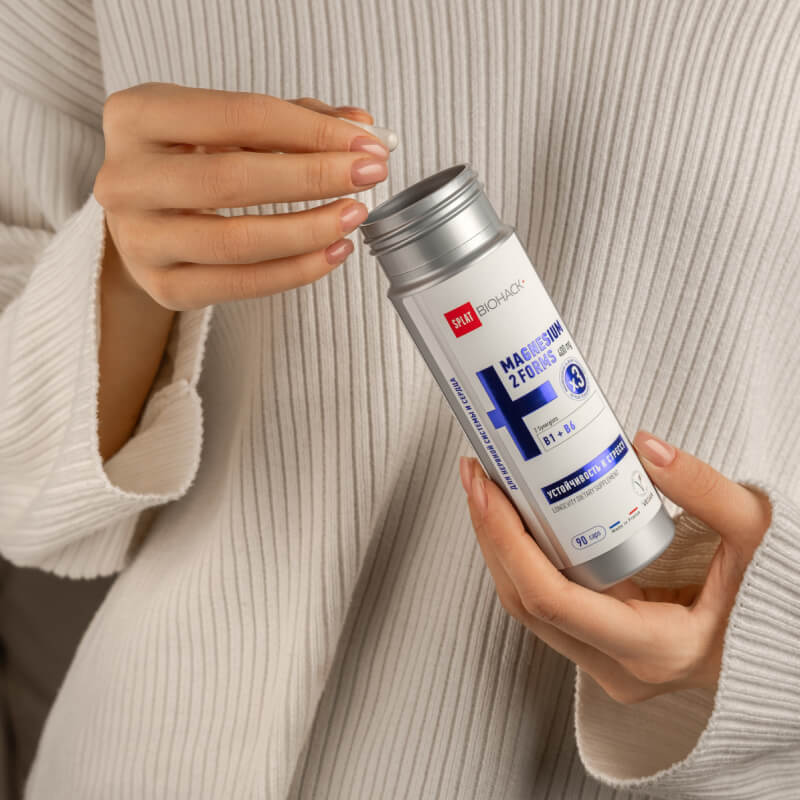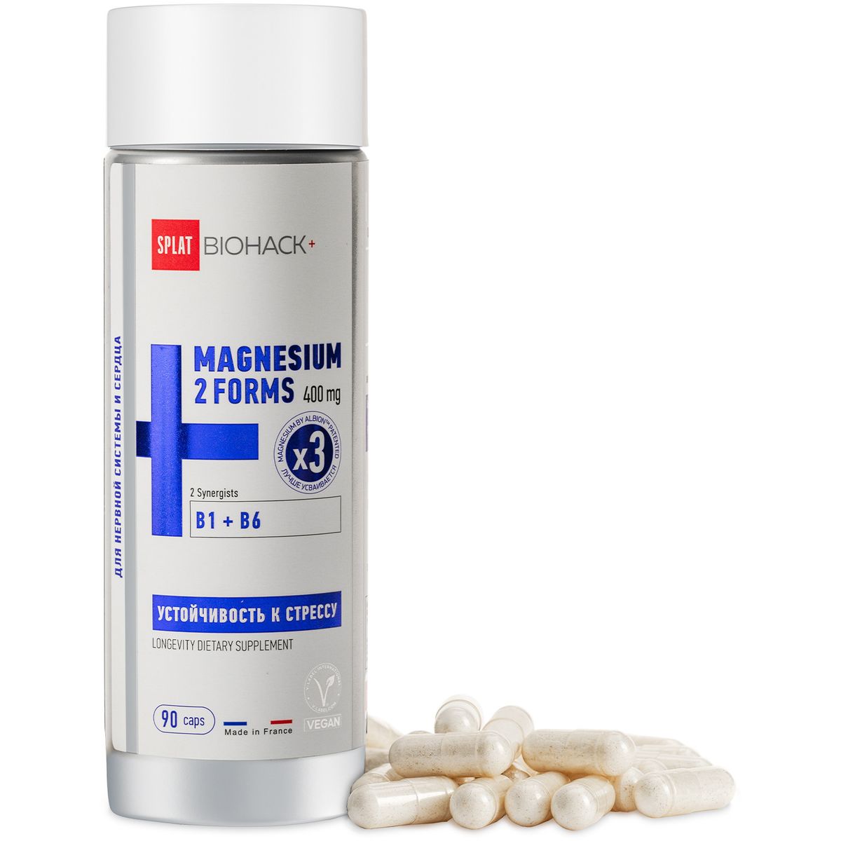 SPLAT BIOHACK+ MAGNESIUM 400 мг элементарного магния в 2 органических активных формах: хелатный магния бисглицинат Albion™ и магния цитрат + синергисты: витамины B1, B6 для усиления эффектов магния.