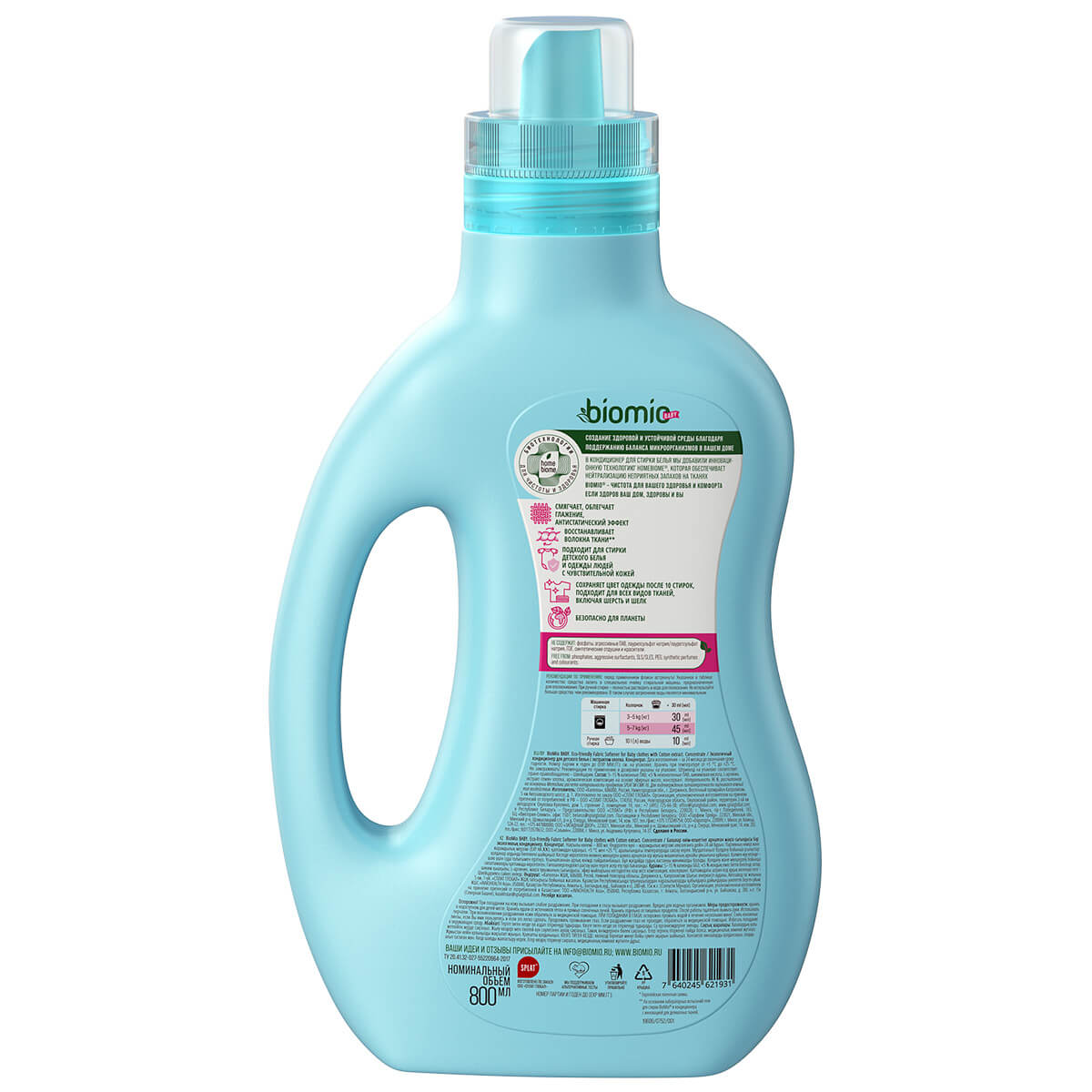Кондиционер для белья детский гипоаллергенный BioMio BABY ЭКО концентрат с экстрактом хлопка, 800 мл