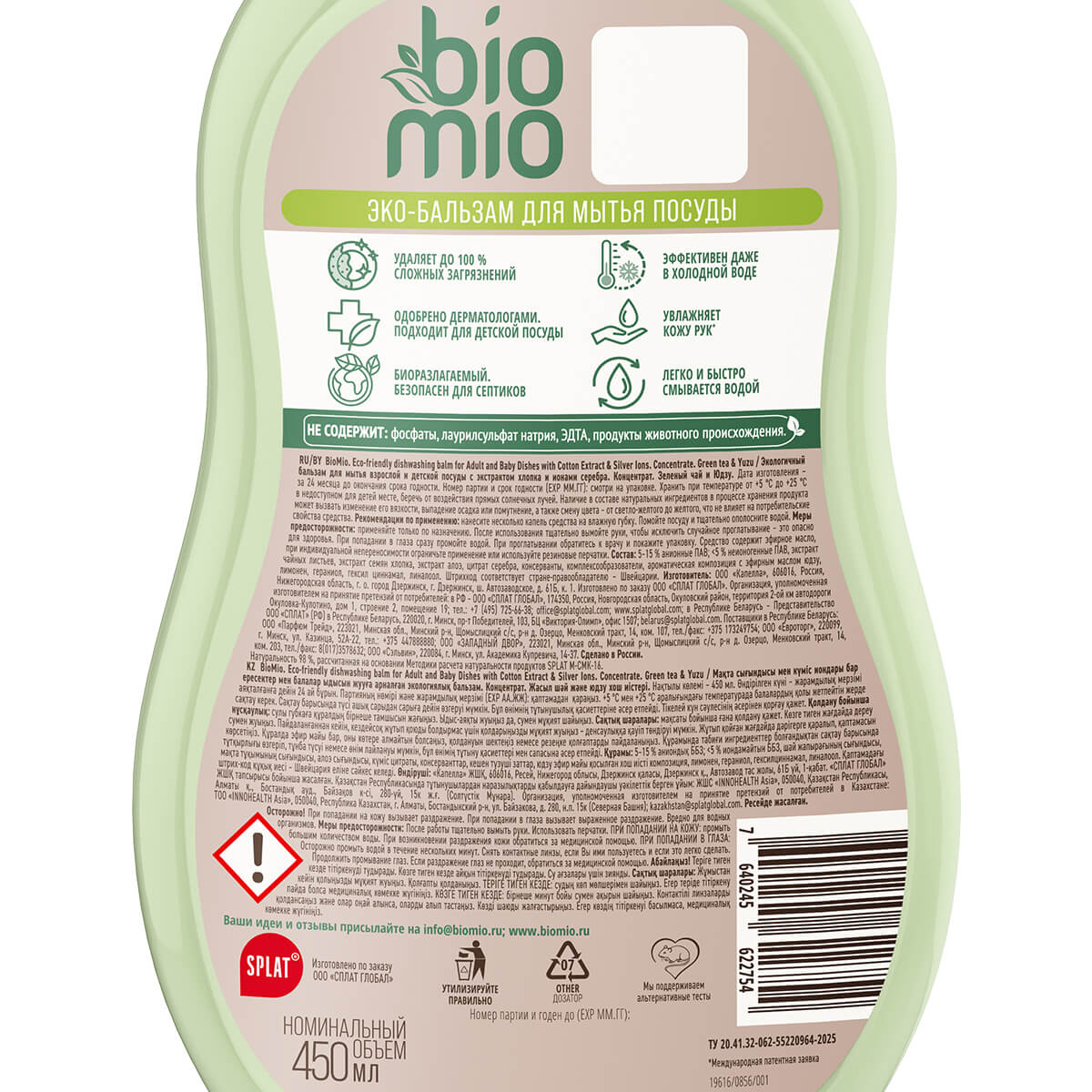 Не содержит: фосфаты, лаурилсульфат натрия, ЭДТА, продукты животного происхождения.