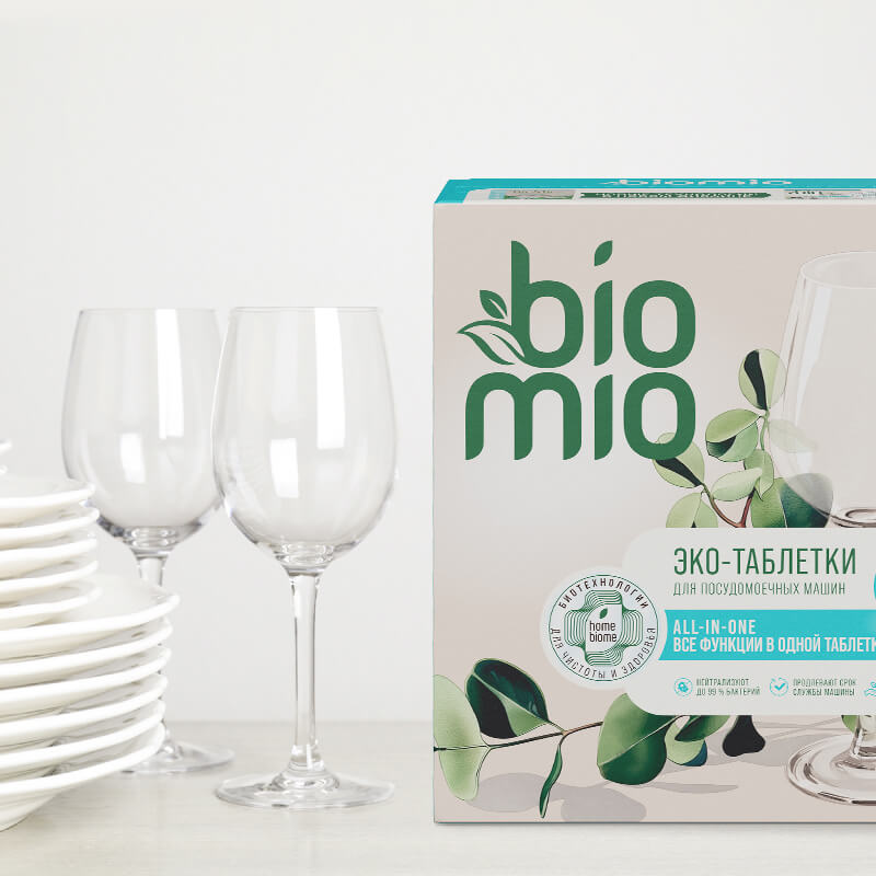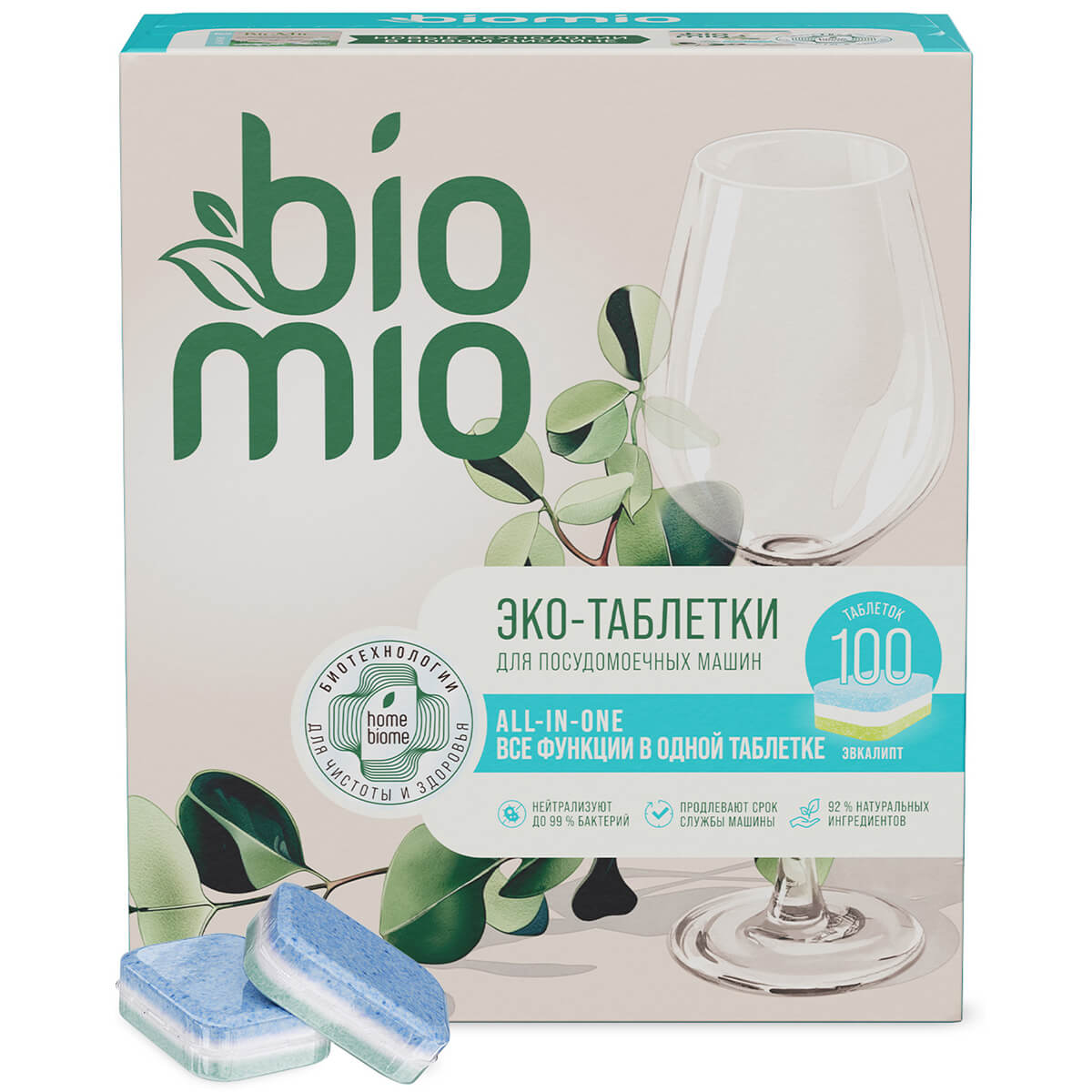 Экологичные многофункциональные таблетки BioMio BIO-TABS с эфирным маслом эвкалипта для посудомоечных машин на 92% состоят из натуральных компонентов.