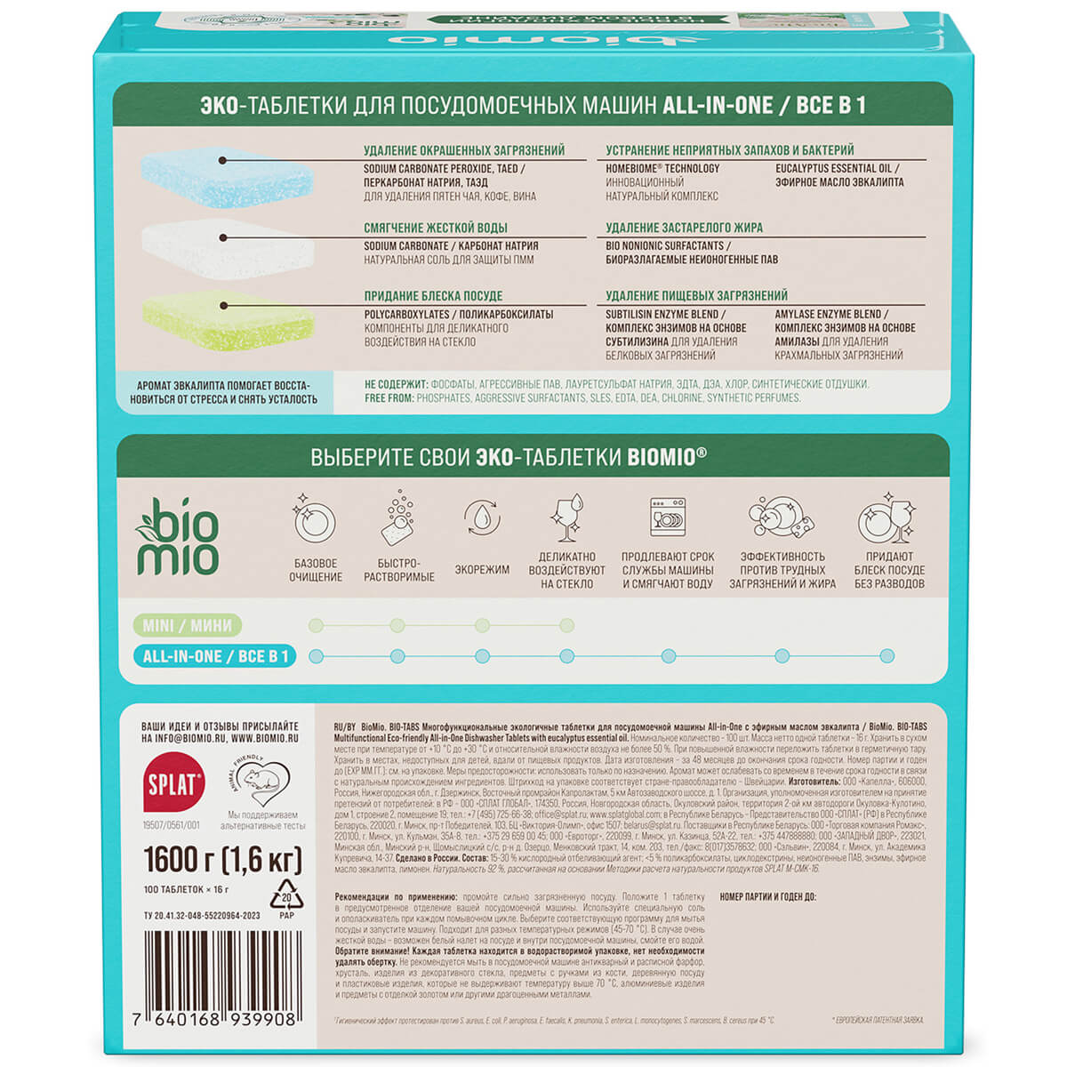 Эко-таблетки для посудомоечной машины All-in-One с эфирным маслом эвкалипта, 16г / 100шт