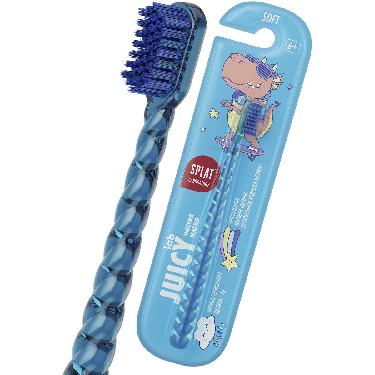 Детская зубная щётка SPLAT® JUICY LAB “Магия единорога” от 6 лет, мягкая, прозрачная/голубая