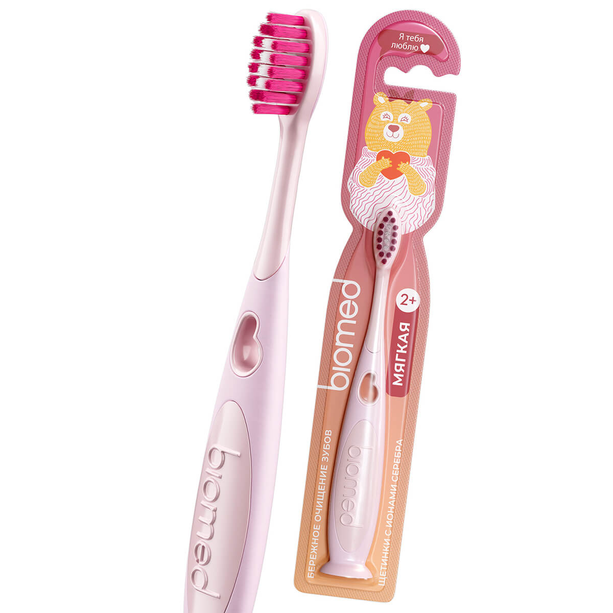 Зубная щетка детская BIOMED (БИОМЕД), с ионами серебра, мягкая. Розовая от 2 лет