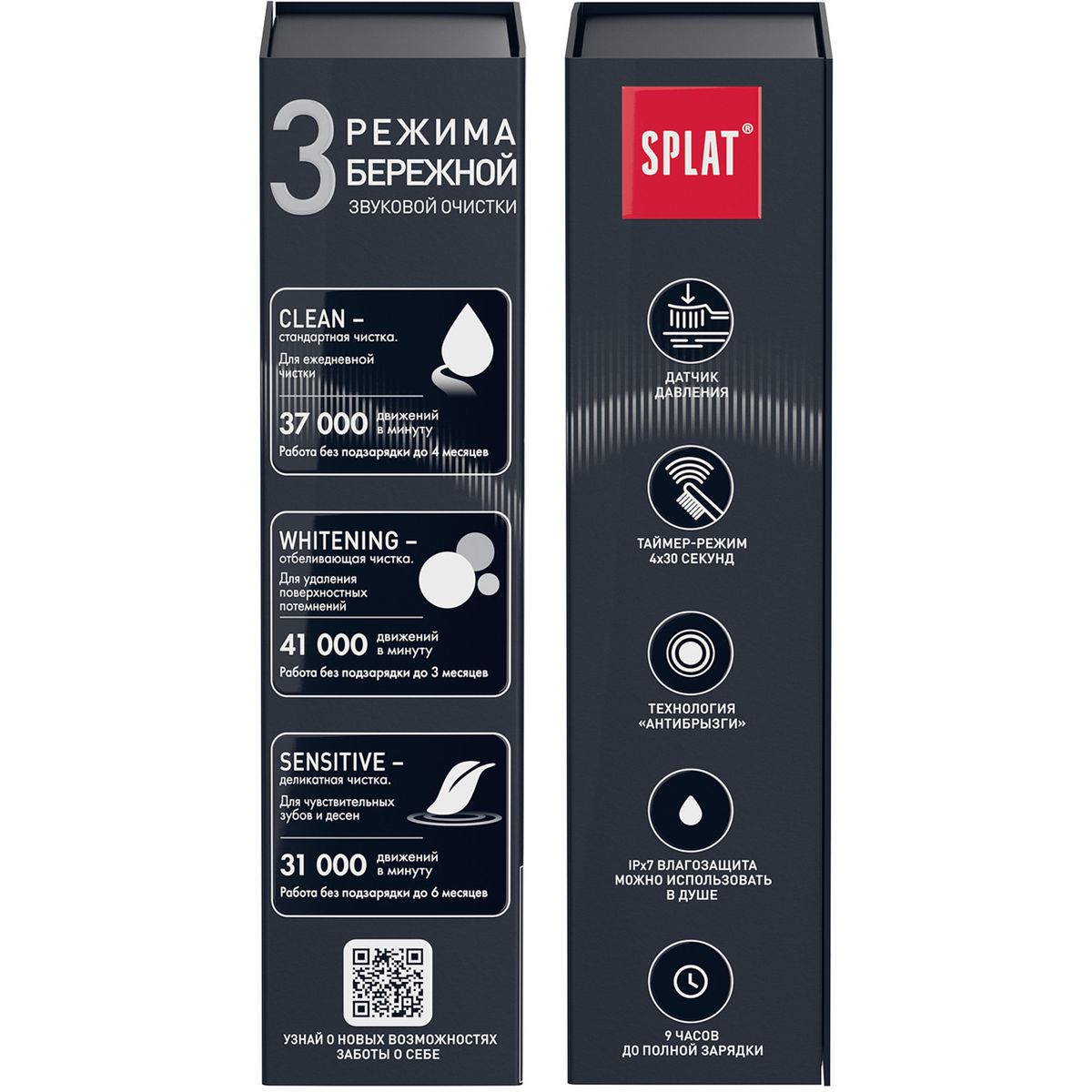 Электрическая звуковая зубная щетка SPLAT Sense&Power, созданная из медицинского силикона, подарит вам уникальные сенсорные ощущения. Важно, что эффективность продукта клинически доказана: в 3 раза выше уровень гигиены (после 2 недель использования) в 2 раза эффективнее очищение с первого раза. 3 режима чистки позволят вам подобрать идеальный для себя вариант. В комплекте 2 сменные насадки.