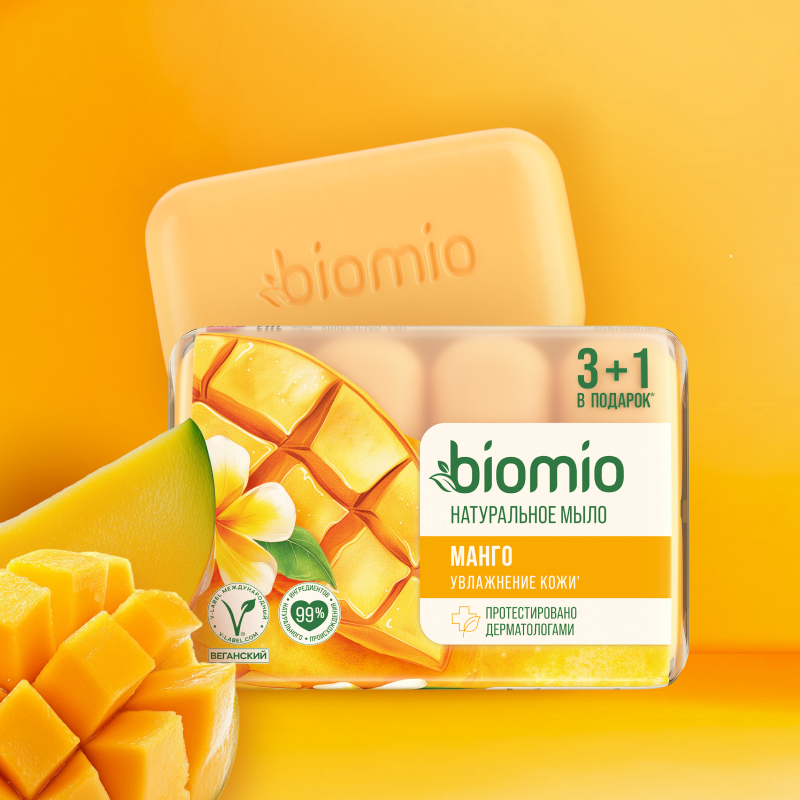 Натуральное веганское мыло BioMio с баттером манго, 4х75 г