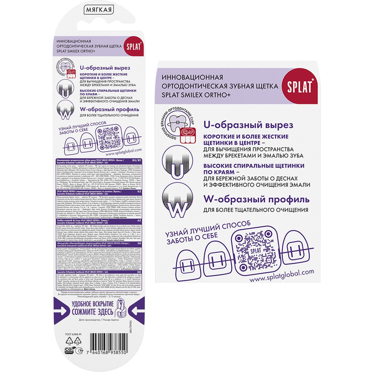 При чистке зубов обычной мануальной щеткой с ровным срезом щетинки могут застревать в замках ортоконструкций и вызывать дискомфорт. Поэтому ученые Инновационной лаборатории SPLAT разработали Инновационную ортодонтическую зубную щетку SPLAT® SMILEX ORTHO+ с U-образным вырезом и двумя видами щетины.