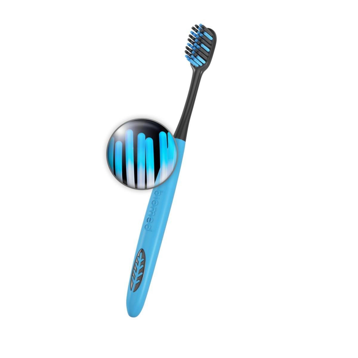 Зубная щетка средней жесткости с угольным напылением щетины эффективно и бережно удаляет зубной налет, при этом не травмируя десны. 2024 щетинки очищают зубы за 30 секунд - доказано клинически. Угольная зубная щетка сделана из пластика высокого качества, безопасна для детей и природы.